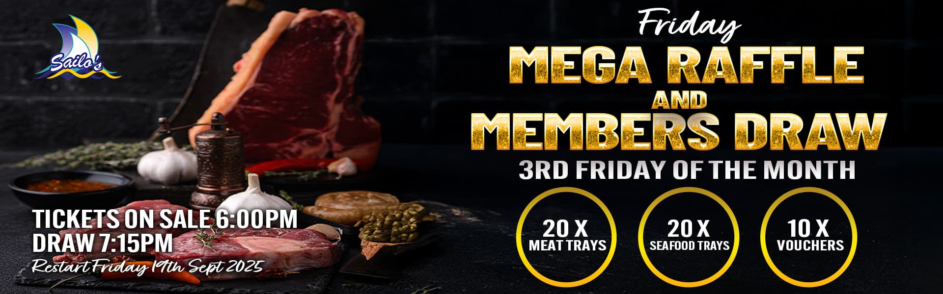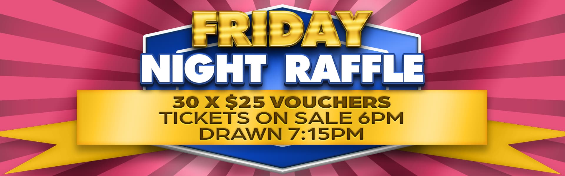The Lucky Members Draw is held every Friday night at 7pm. You are required to be in the Club to win the CASH PRIZE so come along and join us making a night of it. While you’re at the Club try your luck with the Meat and Veg Raffles, drawn at 7:15pm. The draw starts after the Members Draw $$$.