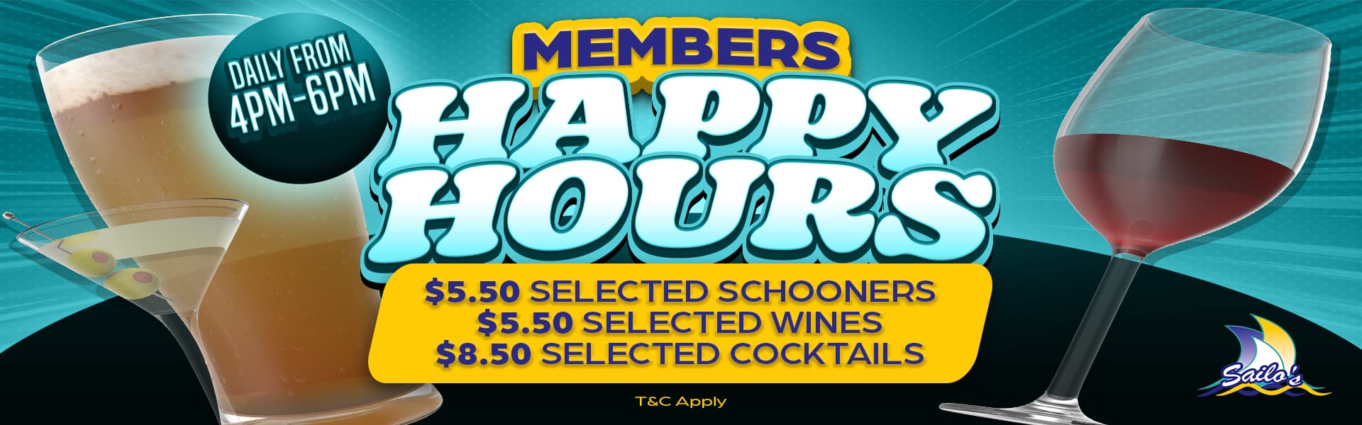Members can enjoy $5.00 schooners of selected beers and $5.00 selected regular house wines.